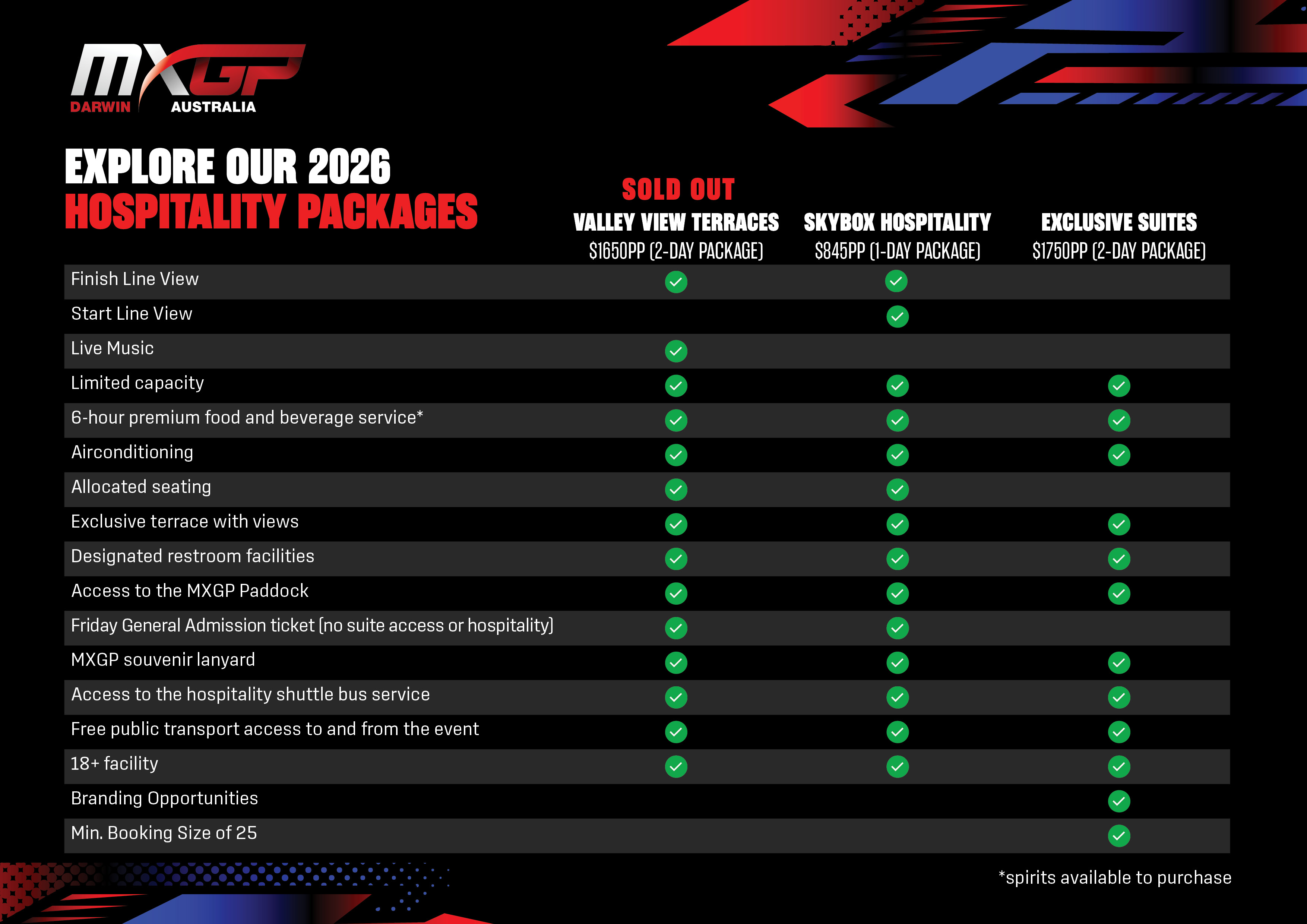 Whether you’re here for the heart-pounding action or to entertain guests in style, these premium options bring you closer to the track, delivering unparalleled views, premium service, and an unforgettable encounter with world-class motocross. Explore our offerings below to find the best seats in the house.