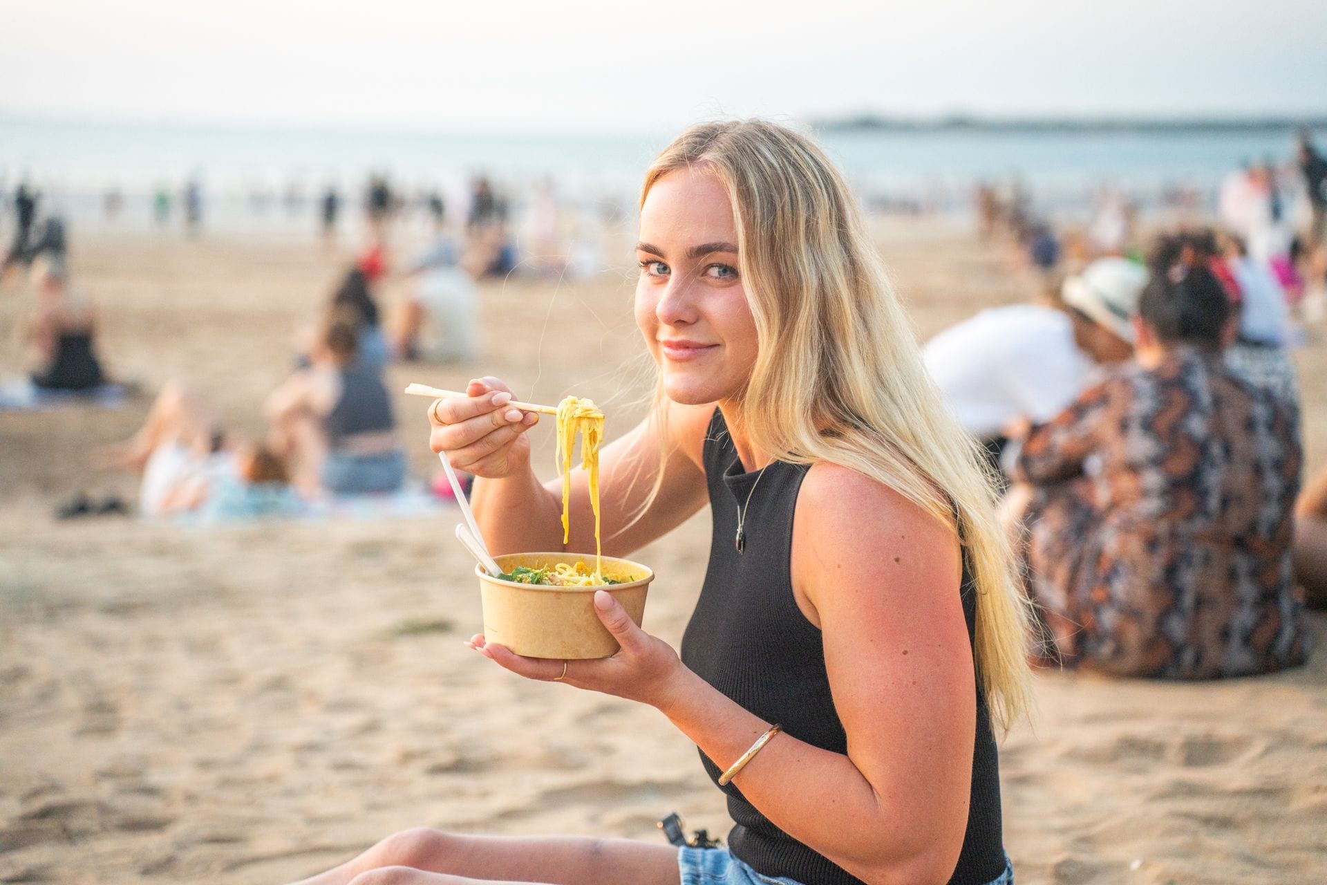 Fuel your evening with an array of delicious food – grab a fresh juice or savour a famous Territory mango. Don’t miss the iconic laksa for dinner! Wrap up the night on the beach, enjoying Darwin’s legendary sunset as the sky turns golden and the crowd breaks into applause.
